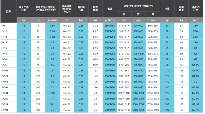 Comprehensiva range aeris dryers variarum industriarum et applicationum in punctis roris tam humilis quam -70°C/-100°F praesto est.