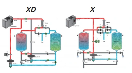 Praeterea calor pressio XD vel X siccatores sunt vere dryers-aer-consumptiones nullae, nullam industriam consumentes vel portionem aeris compressi durante tempore frigido-flante.
