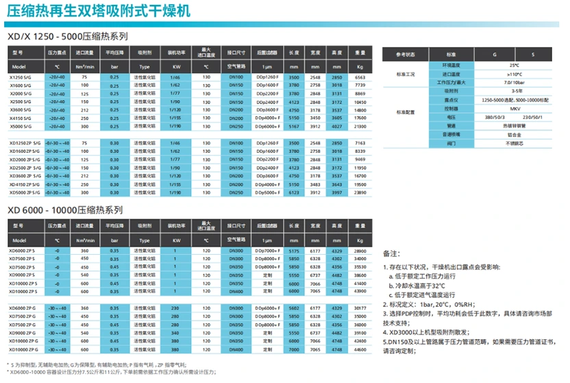 XD vel X compressio caloris adsorptionis dryers adsorbenti qualitatem altae utuntur et efficaciter adhibent calorem compressionis ex compressore oleum liberum ad regenerandum adsorbenti, signanter minuendo energiam sumptionem et sustentationem gratuita.