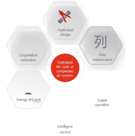 Energy consummatio rationum pro magna parte totalis sumptus aeris compressoris. Manipulus fabrum peritorum nostrorum utitur artificiis computatrum exemplaribus provectis ad excogitandum et compressores maiore evolutione explicandos, certas operationes efficaces et fructus adiuvando augendo.