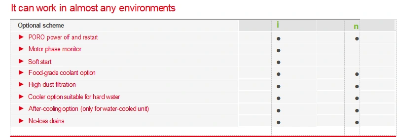 Compressores nostri offerunt cibi gradus coolants, pulvis filtrationis altae & frigidiores aquae durae et aliae optiones culturae duris accommodatae, quae multiplicibus applicationibus tuis occurrere possunt.