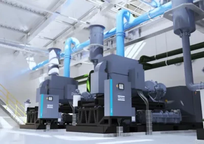 Processus Gas Centrifugae Compressores utuntur viribus centrifugae ad fluxum et pressionem creandum. Technologia centrifuga maxime efficax est ad aerem compressum generandum.