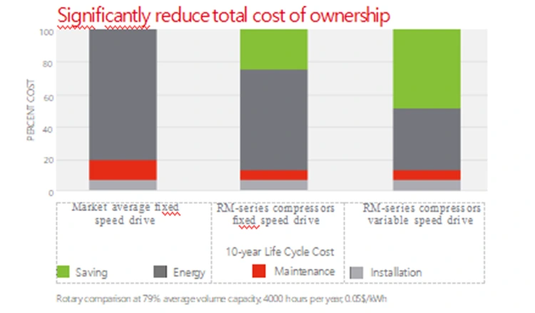 unaquaeque series RM compressor aeris instructus est cum notam-novam, altae efficientiam principale unitatis, coniungens mobilem fixa velocitatem IE3 et ECO*-PM VSD IE5 variabilium technologiae motoriae frequentiam, adiuvans te salvum usque ad 12-30% de industria gratuita.