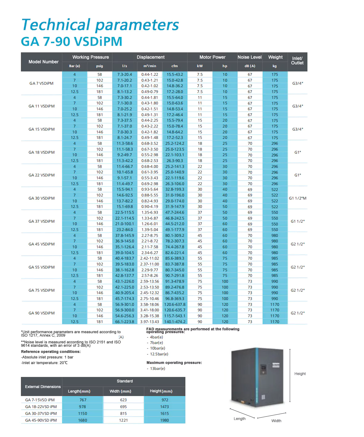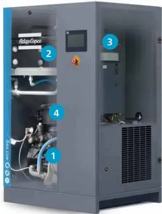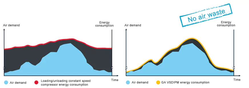 Atlas Copco scriptor VSDiPM series potest automatice celeritatem motoriam ad praecise moderandum accommodare et usui gasi clientium congruere. Comparatus cum compressoribus certa celeritate acti, VSD Frequentia Variabilis Aeris Compressor mediocris vitae usque ad 35% energiae servat.