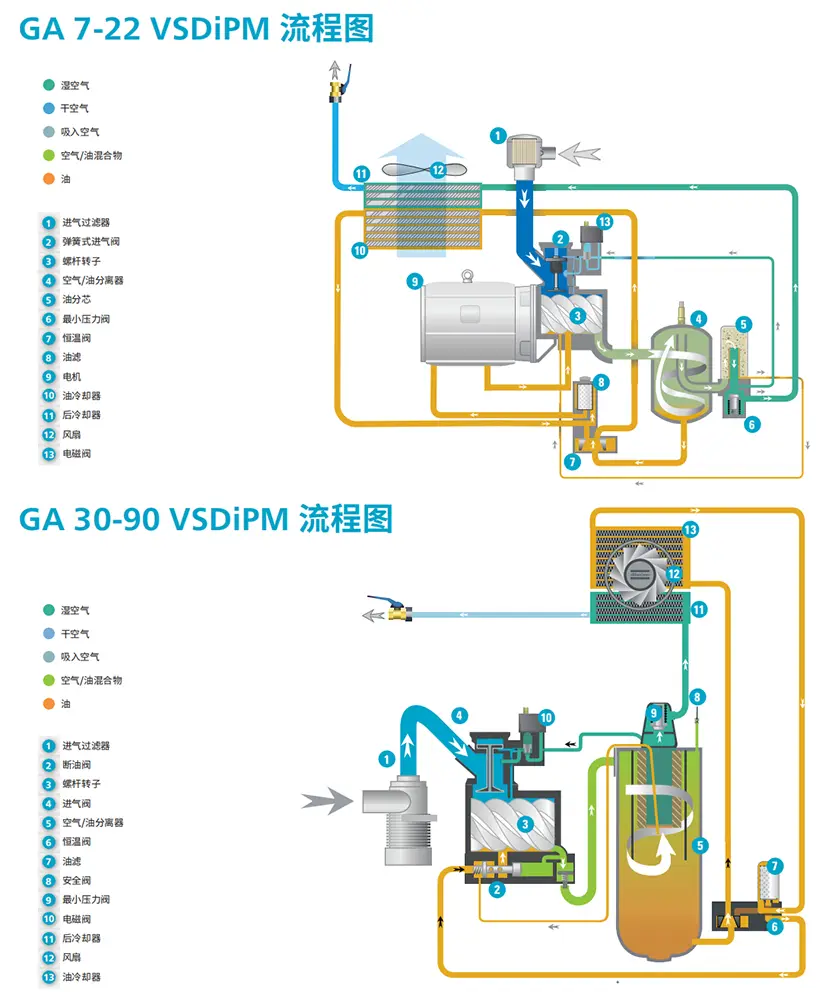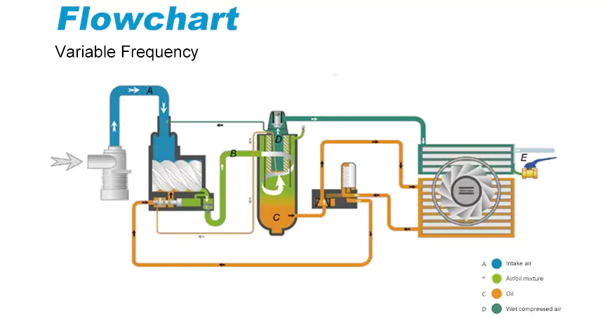 VSD Frequentia Varia Aeris Compressor Atlantis specialiter destinatur ad operationem continuam. Systema coegi adoptat motorem magnetem permanentem efficientem, qui eximium oleum refrigerationis effectum consequi potest. VSD technologia industriam compendiorum usque ad 35% consequi potest, et eius vestigium minus flexibilitatem institutionis efficit.